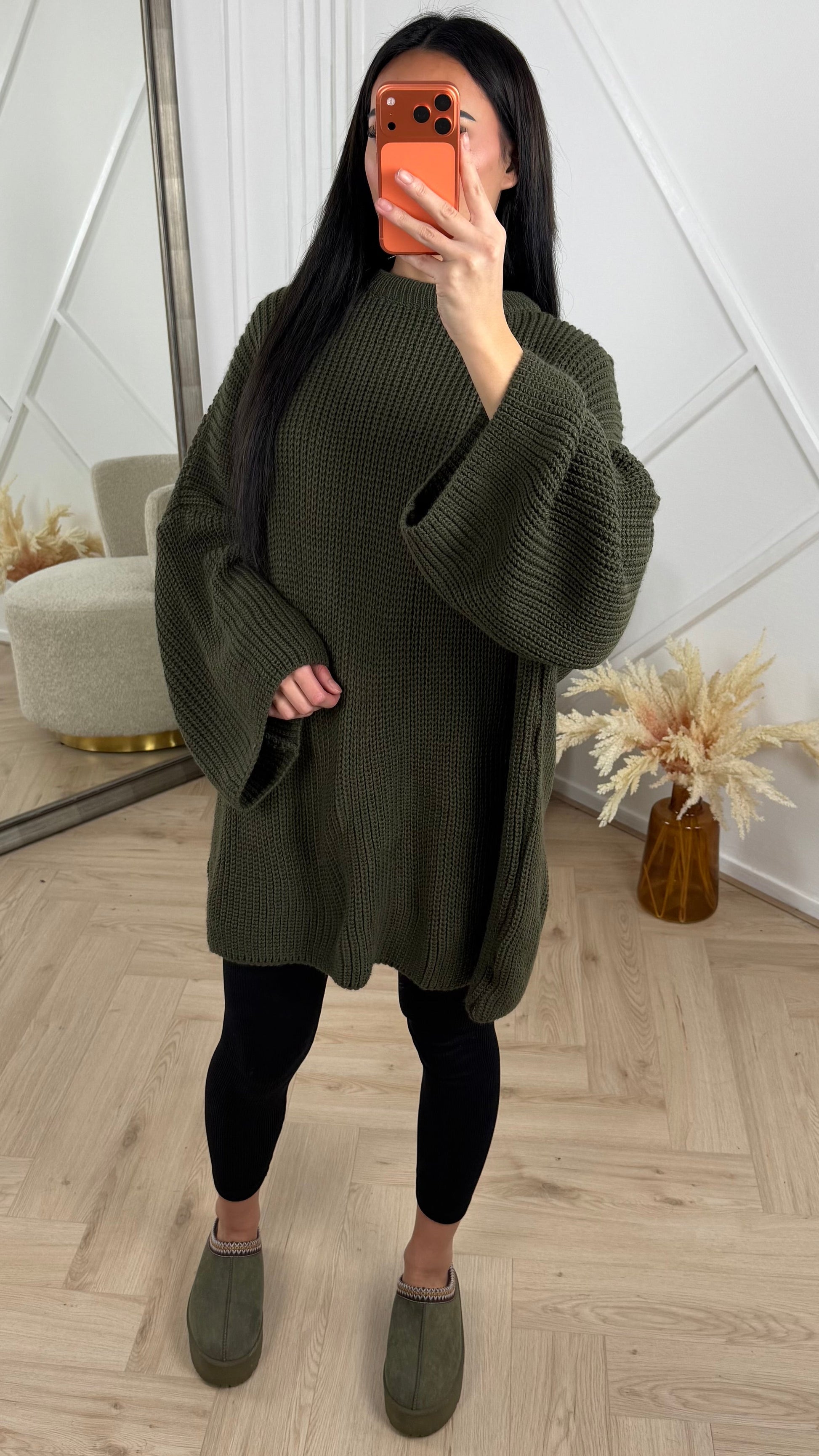 Deze oversized gebreide knit trui is een echte essential voor het najaar en de winter. De grove breistructuur geeft de trui een moderne, casual uitstraling terwijl de ruime pasvorm zorgt voor ultiem draagcomfort. Dankzij de wijde mouwen en rechte snit valt de trui soepel om het lichaam en is hij makkelijk te combineren.